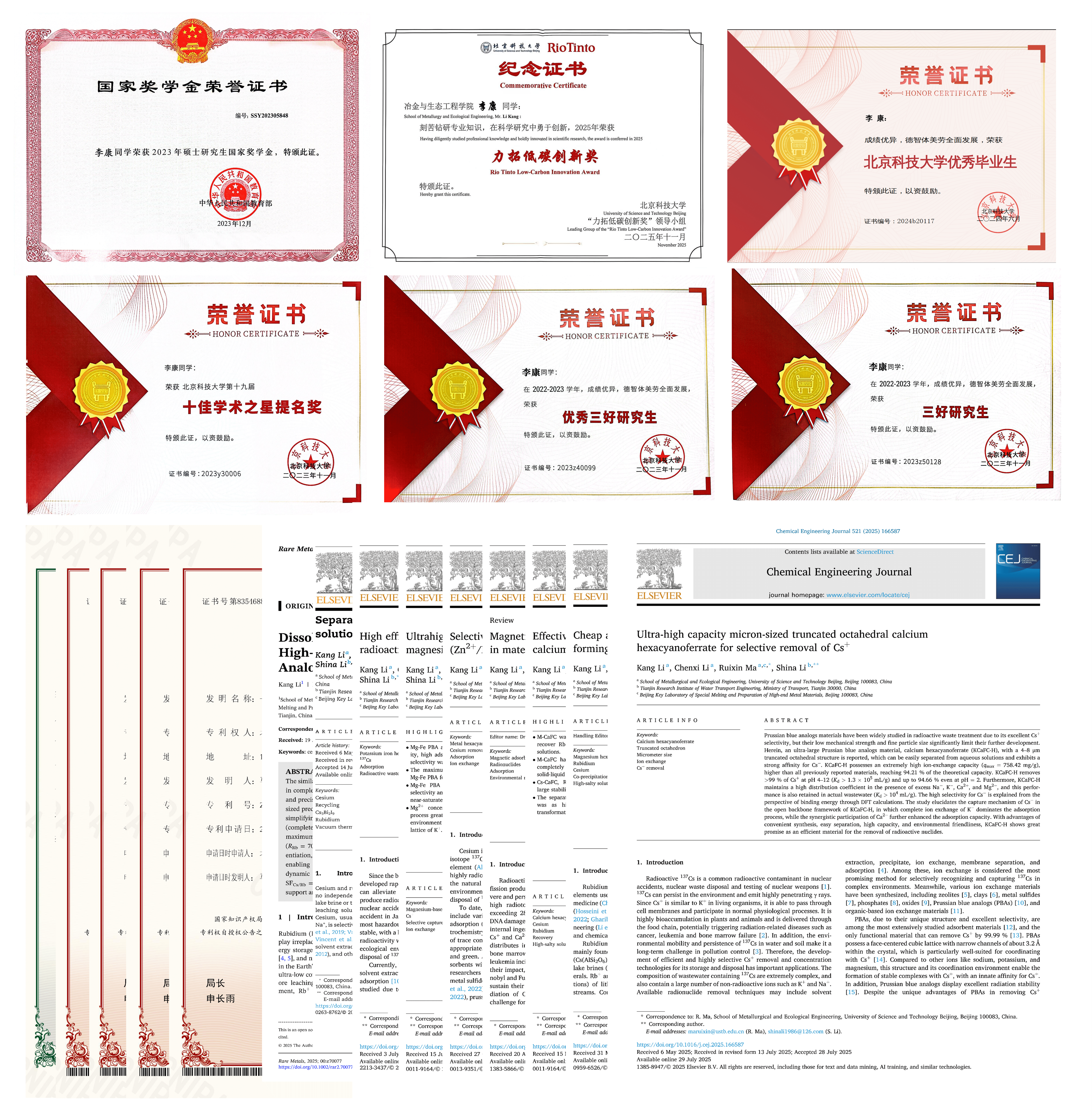 李康,男,1999年8月出生,成人直播 冶金工程专业2024级博士研究生,获2025年中国科协青年科技人才培育工程博士生专项计划,博士研究生国家奖学金、硕士研究生国家奖学金、第十九届“十佳学术之星提名奖”,2024年成人直播 优秀毕业生、优秀三好研究生、三好研究生、佰工钢铁学生创新创业团队奖等奖项荣誉。师从马瑞新教授,从事复杂环境中战略金属的回收和电池材料与器件的合成。截至目前,以第一作者身份发表SCI论文9篇,中科院一区TOP期刊6篇,二区TOP期刊2篇,累计影响因子83。以学生一作授权发明专利5项,申请发明专利4项。