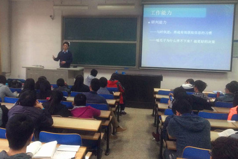 “励志”计划第四届学员田耀森、第五届学员王海岩担任主讲人。他们与在场同学共同分享了提高学习效率和学习能力等方面的心得体会。课上,王海岩谈到自己的学习方法是“书读百遍,其义自见”,抓牢课本是提高成绩的根本,深入的思考则能够进一步加深对所学知识的理解,从而达到举一反三的效果。田耀森通过生动的案例分析,幽默风趣地向同学诠释了在大学里学习,一要注重书本,二要注重思考。谈到学生工作,他希望大家能坚持做到“三不”:不要浮躁,不要官僚,不要影响学习。学习与工作兼顾需要充分提高学习效率,而保持专注是提高学习效率最有效的途径。