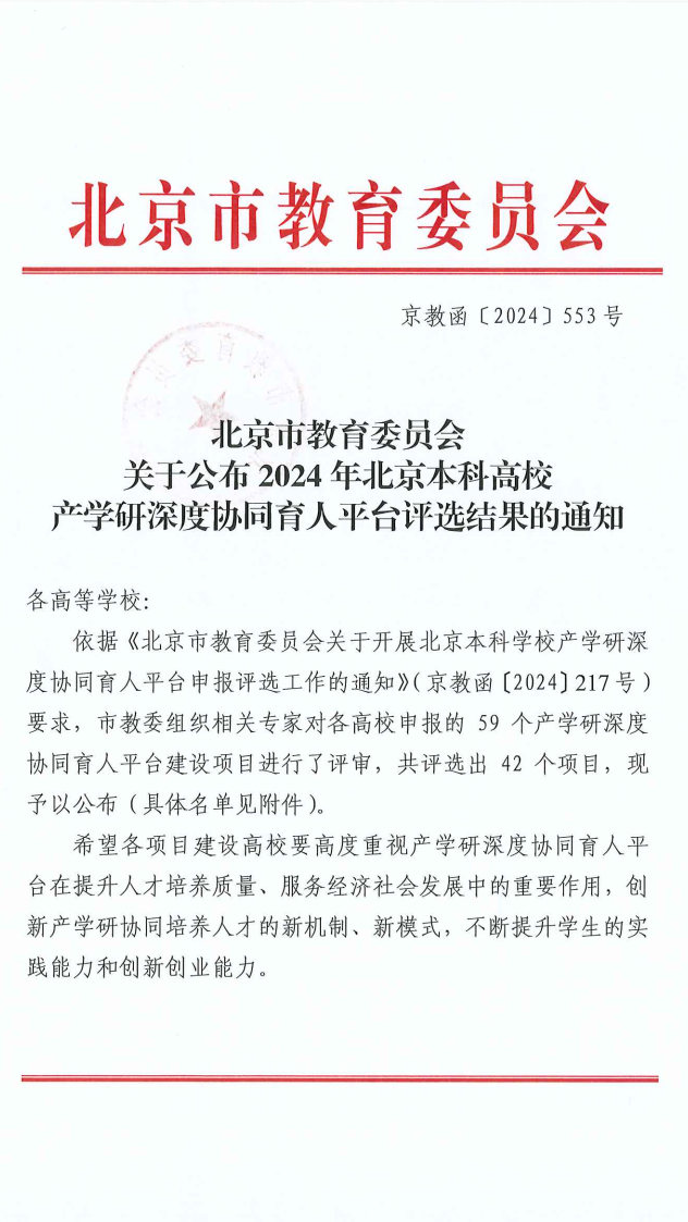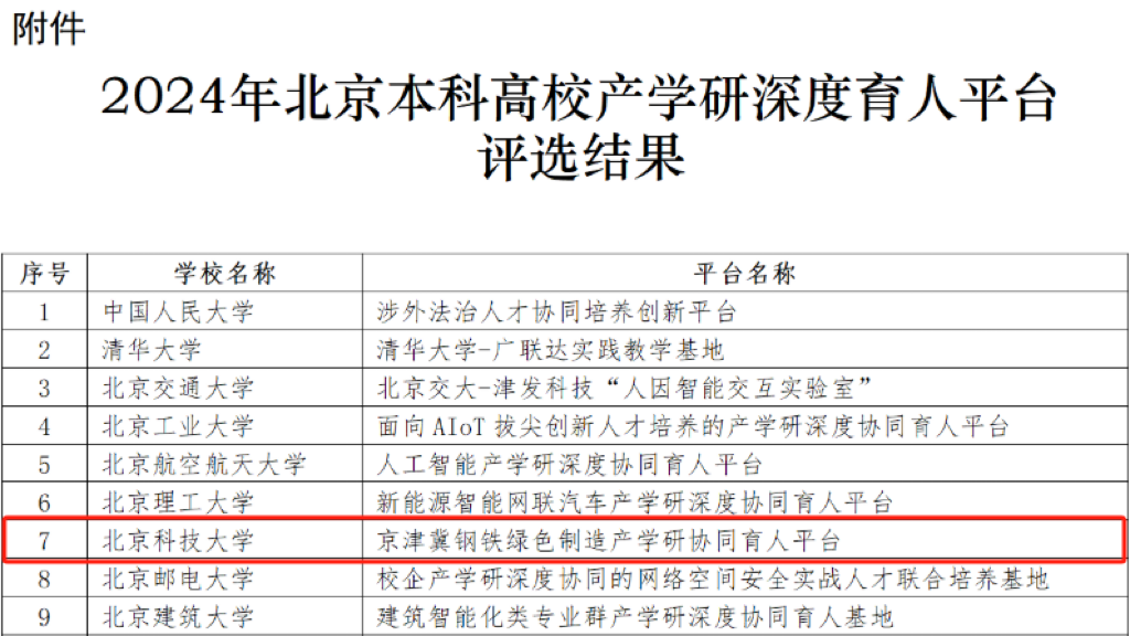 近日,北京市教育委员会下发了《关于公布2024年北京本科高校产学研深度协同育人平台评选结果的通知》,成人直播 院长张建良和党委书记宗燕兵牵头申报的“京津冀钢铁绿色制造产学研协同育人平台”成为度协同育人平台+1!北科大唯一入选2024年北京本科高校产学研深度协同育人平台。