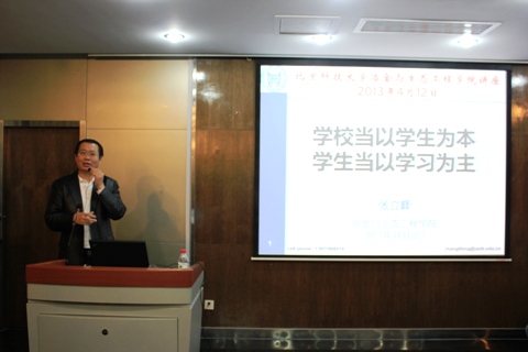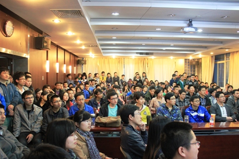 当以学生为本,学生当以学习为主”为题,用诙谐幽默的语言,首先介绍了自己的学习和工作经历,随后介绍了钢铁冶金业的成长与发展历程,指出这个行业的现状和就业现状,并鼓舞在场的学生。其次,他又和学生们探讨了做科研的步骤、老师和学术的相互定位、老师的责任等问题。最后他又针对学生们提出的问题,结合自己的经历依次做了解答。整场活动在数十次的笑声与掌声中宣告结束。