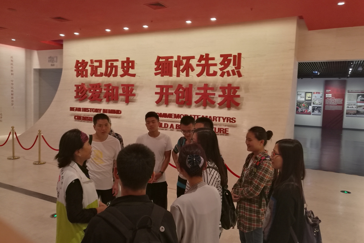 上午七点半,讲解志愿队从成人直播 准时出发,经过约一个小时的车程到达中国人民抗日战争纪念馆。进入纪念馆后,在队长的带领下,同学们首先对讲解词内容进行了大概了解。