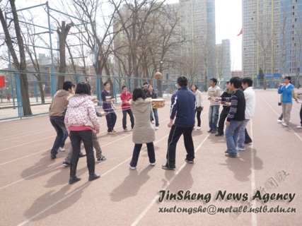 本次活动由分组建队、分组训练及最终比赛三个环节组成,历时约3个半小时。各位学员在按照部门分成4组后,开始了各自团队的队名、队旗、队歌、口号及队形的设计筹备工作。在各队队员的集思广益、热烈讨论下,四支充满朝气的团队就此诞生:由院团委学生会办公室、组织部、心理协会及09级各班学生干部组成的“狮子队”;由科技学习部、社会实践部、求是协会和青年志愿者协会组成的“冶人敢死队”;由体育部、文艺部和外联部组成的“GaGa队”以及由金生新闻社全体社员组成的“金生队”。