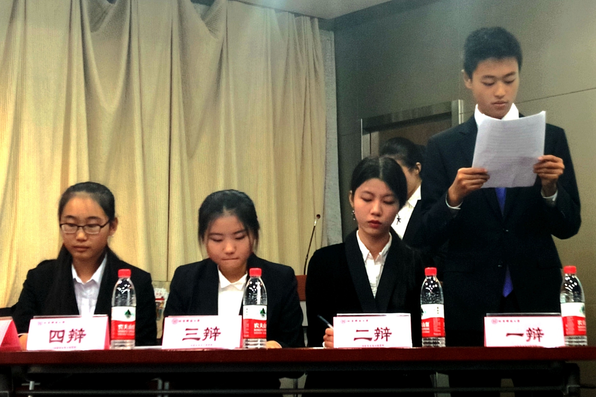 10月22日晚19点,成人直播 第七届“钢魂杯”新生辩论赛第二、三场于冶金楼616青钢报告厅激烈开赛。成人直播 辩论队队员刘硕同学,于宁同学,成人直播 辩论队队长李洋同学出席辩论赛并担任评委。成人直播 学生会办公室部长王甜雨同学担任主持。