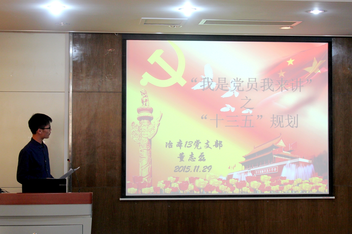 冶本2013级党支部党于11月29日在冶金楼青钢报告厅举行 “我是党员我来讲”理论学习活动。支部党员和积极分子60余人参加了学习活动,辅导员郝勇飞老师进行现场指导。