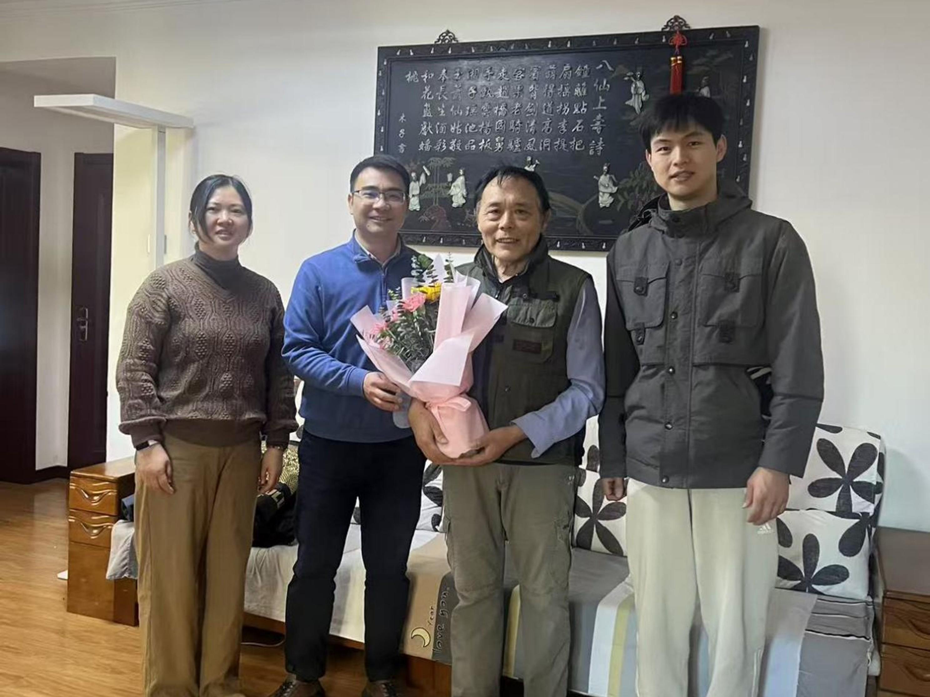成人直播 党委副书记、副院长姜佳男、成人直播 理化系主任张梅、钢冶系教授杨文、成人直播 办公室工作人员一行,先后登门看望了毛裕文、彭志高、张克强三位退休老师,为老师们送上鲜花和节日的问候。