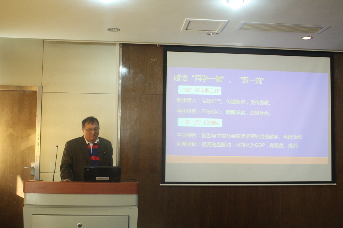 党委书记武贵龙简要介绍了本次论坛的背景。他强调,“两学一做”学习教育不是一次活动,要有针对性地解决问题,用心用力,抓细抓实,真正把党的思想政治建设抓在日常、严在经常。进一步树立清风正气,严守政治纪律政治规矩;进一步强化宗旨观念,勇于担当作为,在工作和社会生活中起先锋模范作用,进一步解决党员队伍在思想、组织、作风、纪律等方面存在的问题,保持发展党的先进性和纯洁性。武贵龙书记提出,在接下来的“两学一做”学习中,加入各位教职工党员的自我廉洁自律的评价,可以更好的促进各位教职工党员将“两学一做”学习落到实处。