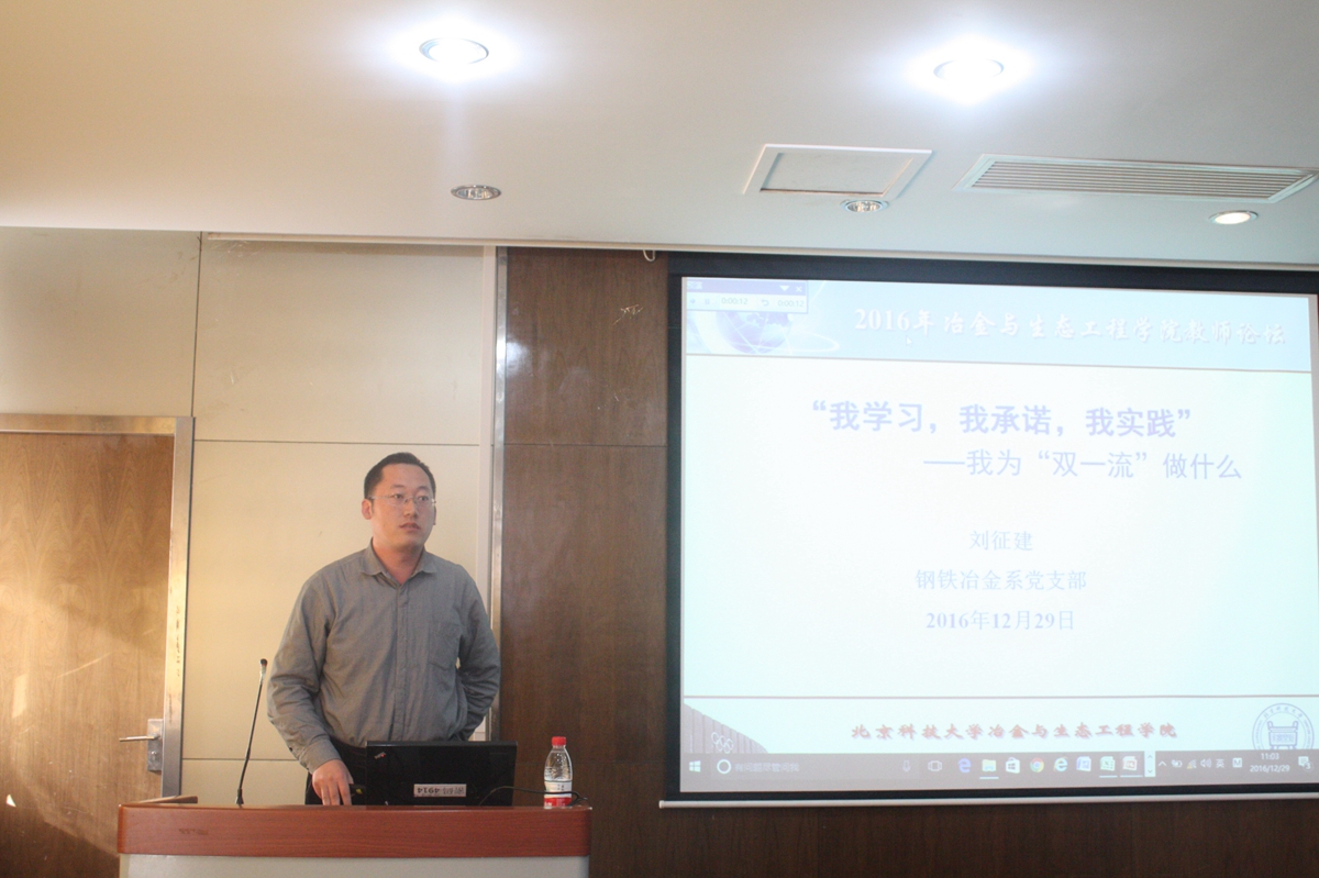 教学工作建设奉献力量。闫柏军老师从冶金物理化学的历史渊源谈到现阶段冶金物理化学学科的发展,同时,对于冶金物理化学前沿所面临的一些挑战提出了自己的建议。曹战民老师指出,为推进世界一流大学和一流学科建设,各位教职工应该多加强自身的理论学习和科学研究。朱荣老师指出,在“两学一做”中,教师要做好自己的教学科研的本职工作,不仅要教学,更要育人。在科研工作中,充分发扬“求实鼎新”的校训精神,做到不忘初心,造福社会。在双一流建设中,要把握中国特色和创新精神,推动成人直播
