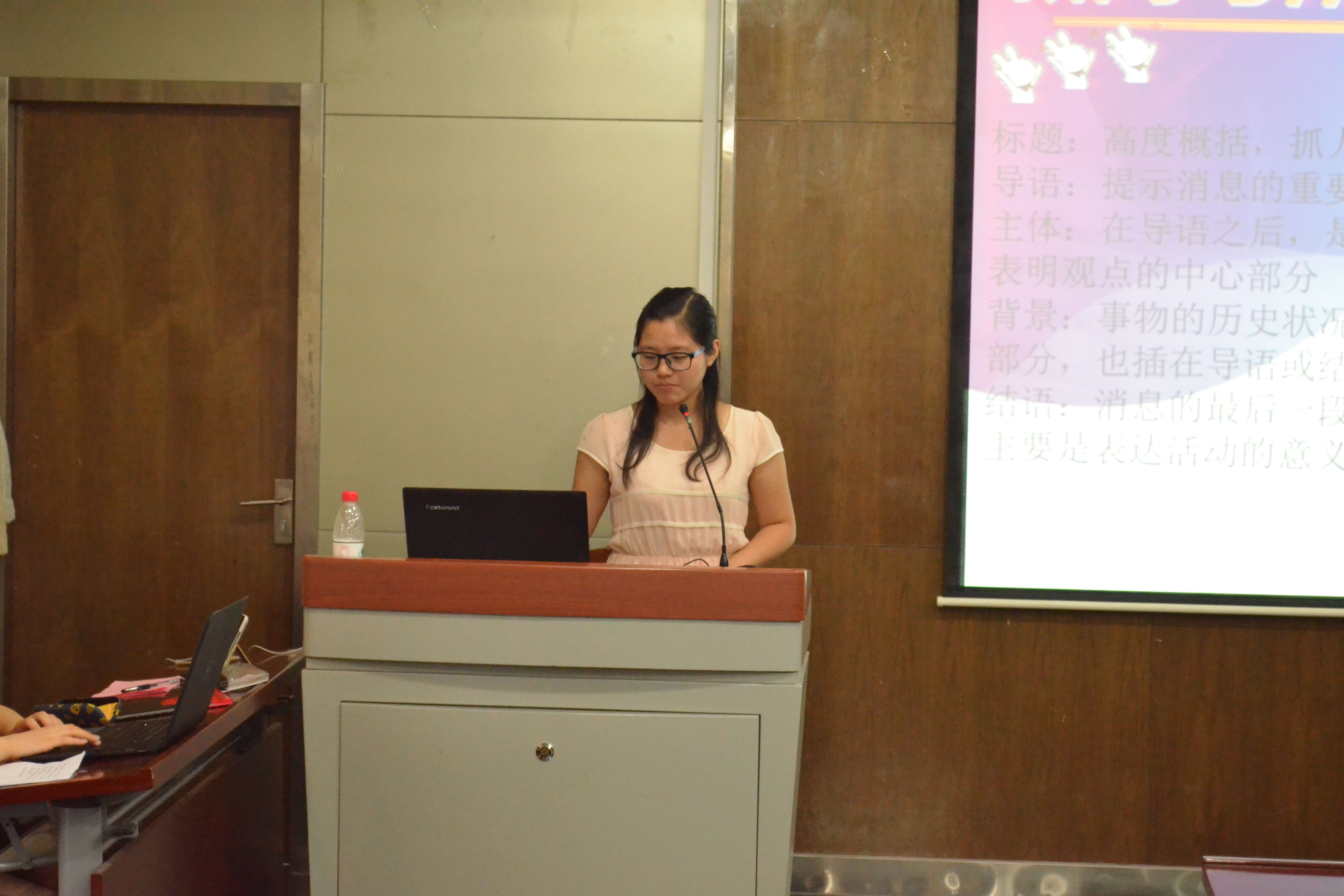 首先,成人直播副主任王春阳以“新闻的创作”为主题,从新闻稿的写作、活动照片的拍摄以及新闻稿的上传机制三方面进行了详细的解读。在强调新闻稿的准确性、时效性与真实性以外,她指出,要想写出一篇高质量的新闻稿,写好第一段是关键,倒金字塔式的内容堆叠会使整篇文章看起来更加层次分明,结尾处活动意义的总结则要言简意赅,突出重点。