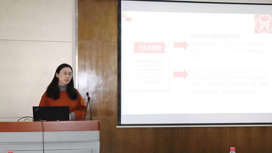 副教授魏丽华受邀作辅导报告,带领大家系统梳理了习近平新时代中国特色社会主义思想的创立背景、科学内涵和历史地位。她在报告中指出,习近平新时代中国特色社会主义思想是新的时代背景的产物,是新的实践基础的成果。当今世界面临着百年未有之大变局,当代中国已不再是国际秩序的被动接受者,而是积极的参与者、建设者、引领者。纵观党史、国史,每一次重大理论创新往往对应着当时最重要的时代课题,习近平新时代中国特色社会主义思想正是肩负着时代使命的系统科学的理论体系,是马克思主义中国化的又一次历史性飞跃,为建设美好世界贡献了中国智慧和中国方案。