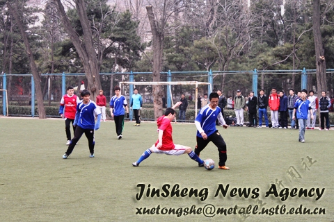 随着裁判员一声哨响,比赛正式开始。尽管天气寒冷,但球员们完美的盘带,有力的头顶,巧妙的过人,犀利的射门,门将的猛扑,充分演绎着足球的惊险与激情。现场观众全神贯注地观看比赛,不愿错过任何一个精彩瞬间。又是裁判的一声哨响,主场比赛结束了,双方0:0平局。比赛进入点球大战阶段,点球过程惊心动魄,每个球员的表现都关系着球队的胜败。最终冶本08级球队以5:4荣获此次比赛冠军,冶本09级赢得亚军,冶研联队赢得季军。
