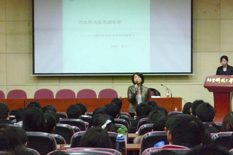 成人直播 2011年度大学生职业生涯规划与发展辅导月已于3月15日正式启动。作为系列活动之一的“名企校友谈”由招生就业处与各成人直播 共同举办,3月19日15:30,现任职于中国中钢集团公司人力资源部、成人直播 2006届研究生毕业生张飞作为首讲嘉宾,在镭钼报告厅与广大的学弟学妹们进行了面对面的交流,招生就业处副处长尹兆华老师出席并发表讲话。