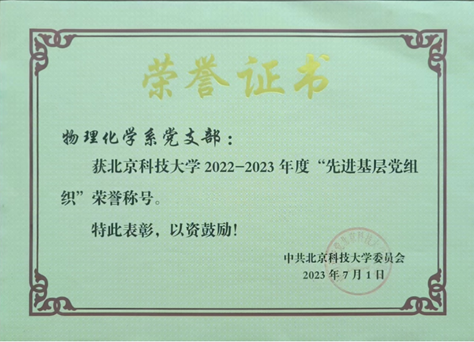 近日,中共北京市委教育工委发布通知,公布了北京高校党建工作“样板支部”培育创建单位名单,成人直播 物理化学系党支部成功入选。