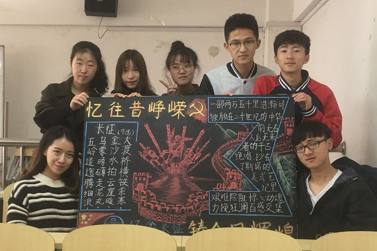 10月23日上午,为集中开展长征精神学习教育,引导学生思考长征精神的深刻内涵,思考当代需要怎样的“长征精神”,成人直播 于冶金楼110举行“激活红色基因,共绘不朽丰碑”专题黑板报绘制活动。
