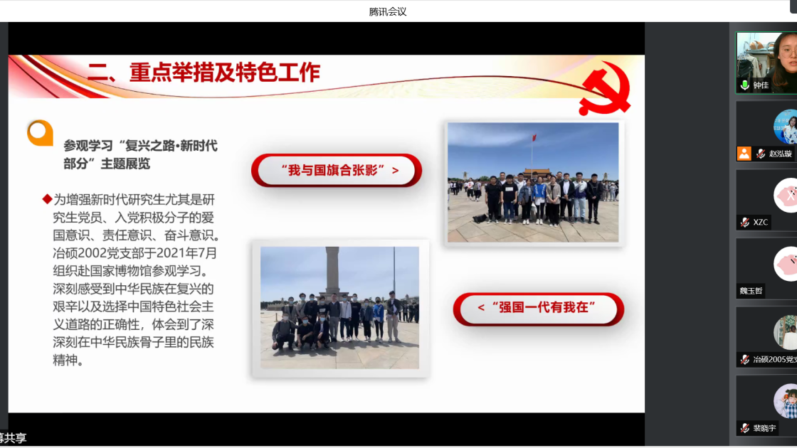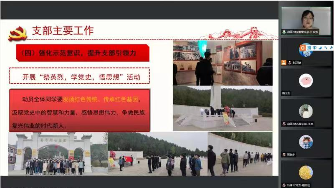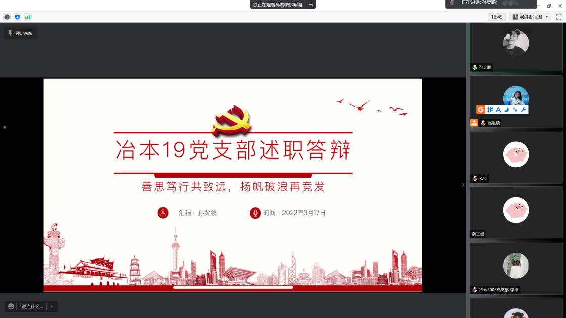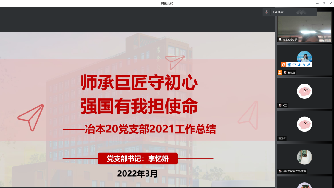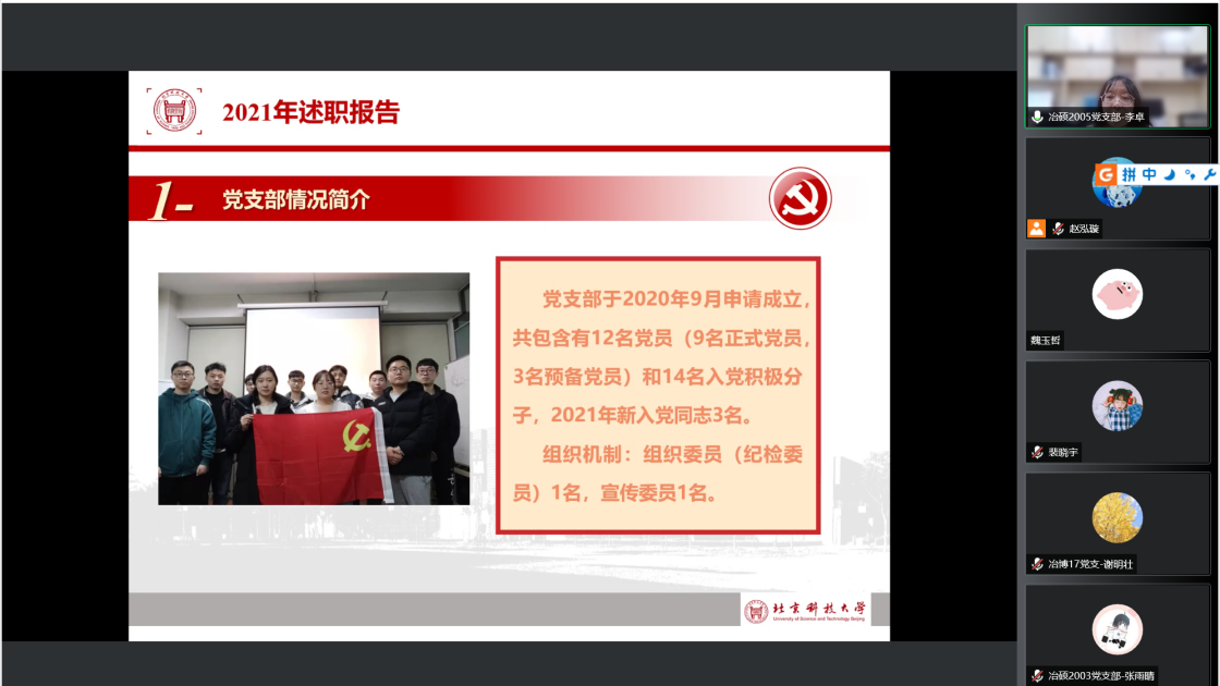 过去一年中,支部书记带动支部成员认真贯彻落实党的十九大和十九届六中全会精神,进一步深化拓展党史学习教育。会上,张建良对学生支部、支部书记在2021年的辛苦付出表示感谢,并进一步明确下一阶段的目标方向。接着,16名学生党支部书记先后就组织架构、制度建设、学风建设等方面对全年党支部工作做了总结汇报。2021年,成人直播 党委各学生党支部紧密围绕贯彻落实习近平总书记“七一”重要讲话精神和关于加强高校党建工作的重要论述,坚持以党的政治建设为统领,以打造高质量的基层党建工作体系为重点,不断提升基层党建工作的质量。各位党支书在述职报告中展示了责任与担当,突出了工作亮点与支部特色,也深刻剖析了目前存在的问题与不足,提出整改计划,明确努力方向。