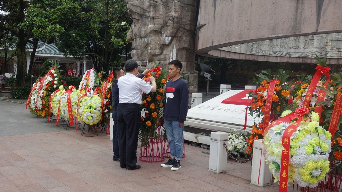 参观结束后,在成人直播 党委书记张建良和贵州大学材料与成人直播 党委书记胡环宇的带领下,全体党员前往红军山烈士陵园,向革命先烈敬献花篮。在红军烈士纪念碑前,全体党员举起右手,紧握拳头,庄严宣誓,重温入党誓词。红军山烈士陵园内,大家还瞻仰了红军烈士英烈墙、邓萍烈士墓和红军坟,近距离了解革命先辈的英雄事迹,学习革命先驱勇于奉献、不怕牺牲的精神。