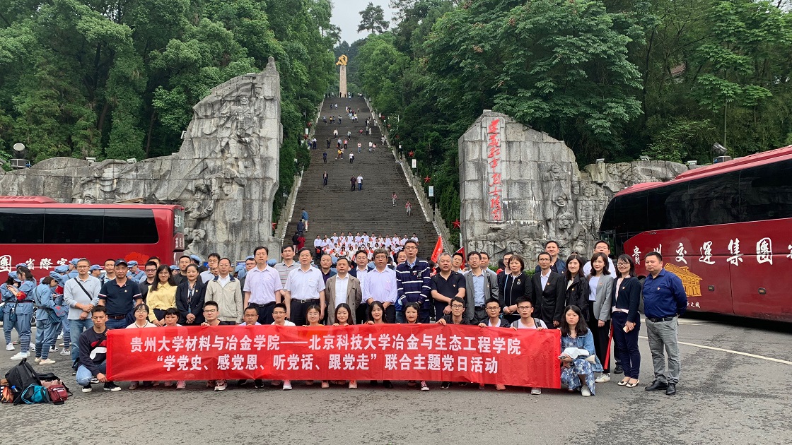 今年年初,习近平总书记赴贵州看望慰问各族干部群众时,专门谈到遵义会议和遵义会议精神,强调“要结合即将开展的党史学习教育,从长征精神和遵义会议精神中深刻感悟共产党人的初心和使命。”为深入学习贯彻习近平新时代中国特色社会主义思想,深入开展党史学习教育,汲取奋勇前行的磅礴力量,5月22日下午,成人直播 党委与贵州大学材料与成人直播 党委联合开展了“学党史、感党恩、听党话、跟党走”主题党日活动,近50名师生党员共赴遵义会议会址参观,缅怀革命英烈,感悟长征精神和遵义会议精神。