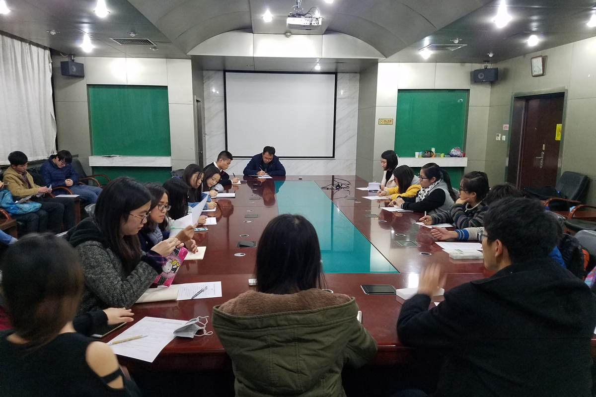团委书记杨志伟老师、团委书记助理李勇同学、团委副书记张月鑫同学与本科2014级、2015级、2016级各班团支部书记对各班主题团日的进展情况及团日活动中遇到的问题进行交流分享。
