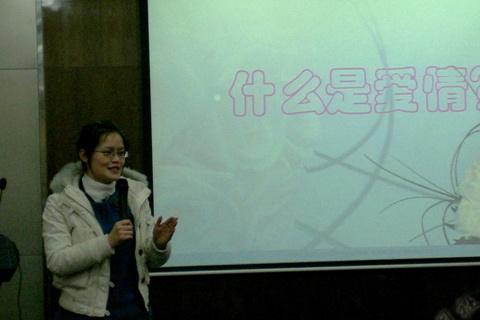 当天晚上7点冶金楼青钢报告厅举行了女生节系列活动之一的“爱情心理知识”讲座。主讲人是北京林业大学心理学研究生霍斐斐。出席本次活动的嘉宾是08级辅导员王洋老师。