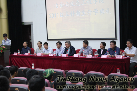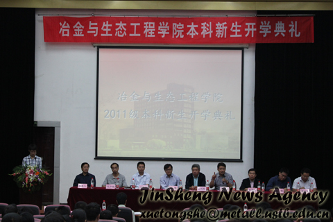 2011级本科新生开学典礼在学术报告厅举行。典礼由院团委副书记尹传举主持,院长朱鸿民、副院长王福明、院党委副书记王春义、院长助理潜伟、王静松、钢铁冶金系主任成国光、物理化学系副主任沈少波、有色金属冶金系副主任曹战民、生态科学与工程系副主任白皓等老师出席了本次活动。