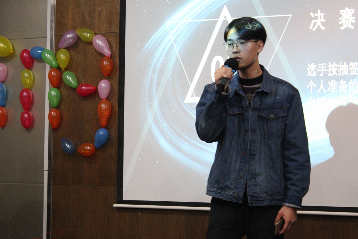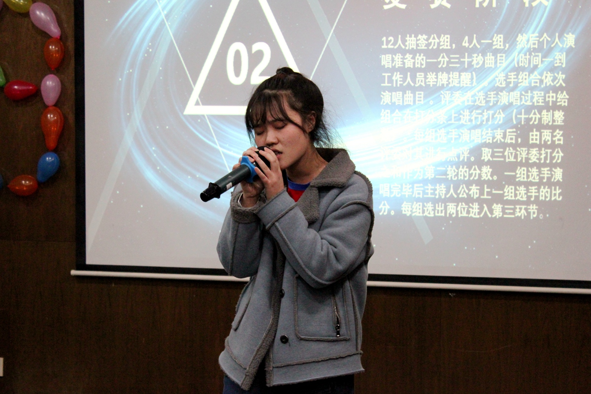 在最后的决赛阶段,六强选手摩拳擦掌,迎接即将到来的激烈角逐,现场的观众也为这压轴大戏屏气凝神,揣摩着最终的胜出者。演唱全首自选曲目的最终决赛,也为选手们增添了不少的难度,对整首歌的感情和节奏的把握,还有自己对紧张感的对抗,是一场技巧和精神的搏斗。在最后的决斗中,六强选手毫无保留,在最后的决胜局中展现了自己最好的状态,充分发挥了自身的优势。周雨童同学一曲《走在冷风中》,勾人心弦,将现场的听众带到了在爱别离,情难易,行走在冷风中的那个时候心酸、不舍、难过;随后胡晨钰的《阴天》则给现场带来了一阵清新的少女风,少了些沉重和伤感,多了点释然和不羁;而后徐佳豪带来的《我爱你》则是将现场的气氛带回到了温暖的晴天,跳动的音符下饱含真挚的情感歌声将刚刚“失恋”和“阴天”带来的坏心情一扫而空;李正韬的《落俗》表现得不落俗套,独特的声线将本身蕴含磁性的男低音魅力充分展现;紧接着,刘恒一首民谣――《少年锦时》,简单的调子,干净的声线,唱出了简单的生活里的懵懂初恋,还有对像乌托邦一样无忧无虑的日子的向往,深深俘获了评委的心;最后一位选手肖九三为大家带来了《末班车》,男低的低层,温婉的转音将歌词中蕴含的忧郁发挥得淋漓尽致,收获的阵阵掌声为本次对抗拉下帷幕。最终经过评委的最终决议,刘恒同学荣获冠军,李正韬同学收获亚军,肖九三同学获得季军,他们的深厚实力最终得到了评委们的认可。随后,院文艺部副主席戴承硕为他们递上了证明他们付出的荣誉证书。