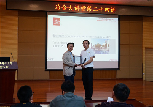院长张立峰向Youn-Bae Kang教授颁发了冶金大讲堂第二十四讲主讲嘉宾证书。