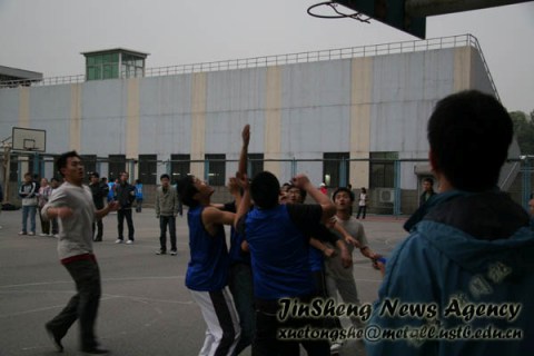 研究生会篮球决赛在篮球场西侧火热举行。对抗的双方是冶研10级2班和10级4班。院党委副书记王春义老师、10级研究生辅导员王丽莉来到现场并出席了最后的颁奖仪式。