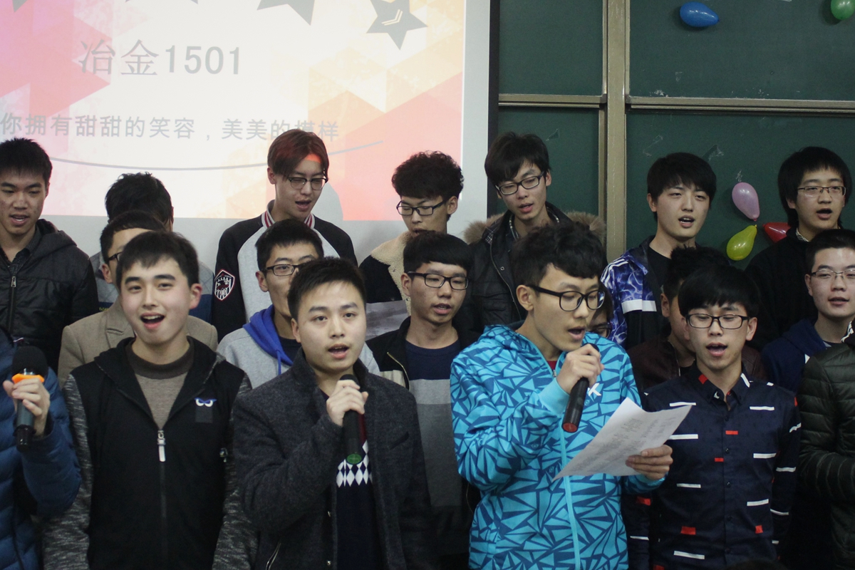 所有女生节日快乐,并带来歌曲串烧,歌声悦耳动听。冶金1502班为同学们表演了精彩的喜剧,风趣幽默地描述了女权至上到男女平等的改变,赢得观众阵阵掌声。在游戏环节中,七支队伍将画饼充饥、三打白骨精、眉目传情等词语表演得惟妙惟肖,引来阵阵笑声。最终冶金1506班代表队获得第一名,冶金1501班抽取了“魔鬼卡片”接受相应的惩罚,两位男同学合吃一根麻花,引来阵阵欢呼。