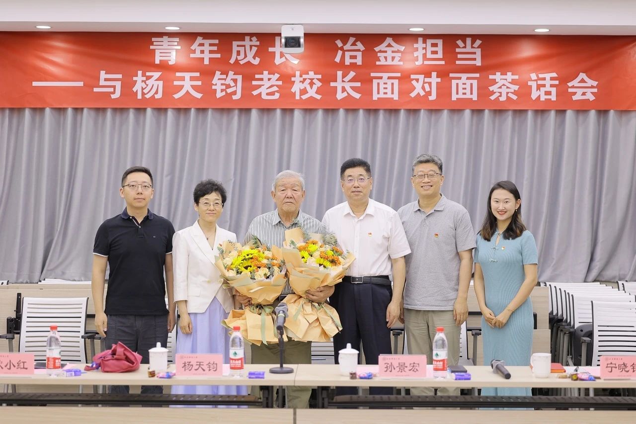 在中国共产党103周年华诞之际,7月1日上午,“迎七一:青年成长 冶金担当——与杨天钧老校长面对面茶话会”在冶金楼616报告厅举行。茶话会邀请成人直播 原校长杨天钧与成人直播 、冶金全重、碳中和研究院、卓越工程师成人直播 、人工智能研究院等20余名青年师生代表共聚一堂,共同赏阅杨天钧老校长在成人直播 校报上发表的文章《青葱岁月,钢铁摇篮》,追忆往昔岁月,共话事业发展。校党委副书记孙景宏、科技史与文化遗产研究院党委书记耿小红、管庄校区党委书记宁晓钧、宣传部副部长薛浪出席活动。成人直播 党委书记宗燕兵主持活动。