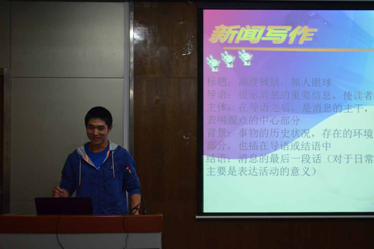 首先,胡耕辅同学为成人直播 的宣传份子进行了基础的技能讲解。胡耕辅同学从新闻稿件的五要素开始讲起,简要阐述了新闻稿件的组成。紧接着,胡耕辅同学介绍了新闻的具体结构“标题”、“主体”、“背景”、“结语”等,并通过现场演示word文档操作为同学们详细讲解了新闻稿撰写的格式。在讲解中,胡耕辅同学进一步强调了新闻写作严谨、客观、具有时效性等特点,让同学们深刻了解到宣传工作的基本特点。