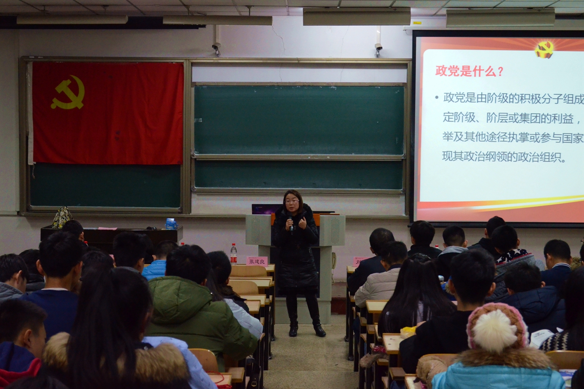 成人直播 第271期学生业余党校第一讲正式开始。马克思主义成人直播 副院长刘丽敏老师先从当代大学生不同的入党动动机讲起,纠正了部分学子为求职、从政等现实条件的便利而选择入党错误认识,强调了端正入党动机的重要性。同时,刘丽敏老师还举出现任科学技术部部长万钢同志以及前卫生部部长陈竺同志从无党派人士到入党从政的历程,给在场学子道出了未来从政政治条件广阔的现实情况进一步纠正了同学们的错误认识。在场的同学无不纷纷点头认同,对刘丽敏老师表示认同。紧接着,刘丽敏老师从“十八大”“两会”“十一届三中全会”等基础名词与同学们进行互动,回顾了政治基础知识,进一步加深对了解中国共产党的运作架构。而后,刘丽敏老师从对党章的基本认识、党章修改历程的回顾以及修改党章的必要性、解读新党章、实践党章争做合格党员四个部分带领给在场的同学系统地学习了党的宪法――党章,强调了“纪在法先”的基本概念。刘丽敏老师谈及修改党章的必要性时说道,修改党章是党总结经验不断进步,在统一思想的前提下积极推进视野的重要举措;在解读新党章这部分,刘丽敏老师呼吁在场的老师和同学们贯彻落实中共“两学一做”的号召投身于实践中去,同时给我们解读了十八大带来的新政策和新思想。在最后,刘丽敏老师鼓励我们积极实践党章,从中国共产党以及作为一个共产党员的应然概念中,提出了我们应争做一个除了有公民使命感以及道德良性素养的“好人”,还具备党性素养以及党识的人的希冀,积极投身于拥护中国共产党的行列中去,自信自强。在刘丽敏老师的美好祝愿与同学们的热烈掌声下,成人直播 第271期学生业余党校第一讲至此结束。