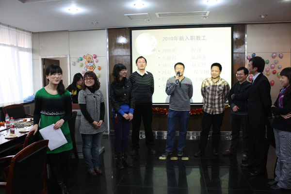 新入职教师集体亮相也是本次活动的一大亮点。成人直播 2010年共有11位新入职教师,他们分布在教学、科研、实验、学生工作等各个岗位上。成人直播 利用元旦联欢的机会,将新入职教师聚到一起,一方面让他们更快的融入成人直播 这个大家庭来,另一方面也让大家对他们有更多认识和了解的机会。活动现场,新入职教师逐一发言,道出了入职半年来的感悟,他们感谢成人直播 和成人直播 对他们的培养和关心,感谢前辈们对他们的帮助,表示一定会努力工作,为成人直播 的发展添砖加瓦,贡献力量。