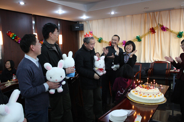 联欢会在欢快喜庆的气氛中拉开帷幕。2011年是兔年,活动伊始,成人直播 工会特地为属兔的教师们准备了精美的礼品,订制了美味的生日蛋糕,在”祝你生日快乐”的乐曲中,属兔的老师们许下心愿,吹灭蜡烛,与在场的所有老师们分享了生日大蛋糕。属兔的老师们还轮番上台,为大家抽出幸运奖品,送出祝福。据悉,成人直播 一共有22位属兔的老师,分别为60岁、48岁、36岁、24岁,四代同堂,彰显成人直播 的底蕴与生机。