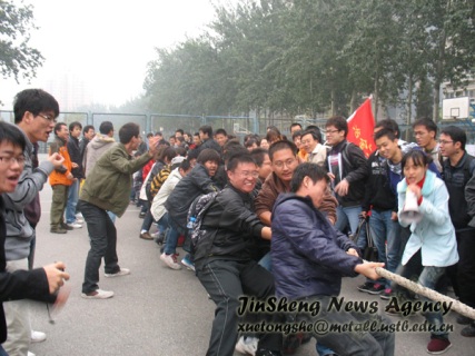 与冶金工程研究院在篮球场进行了一场激烈的拔河比赛。成人直播