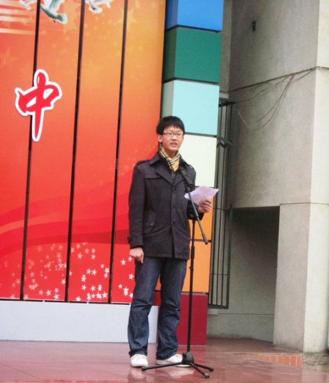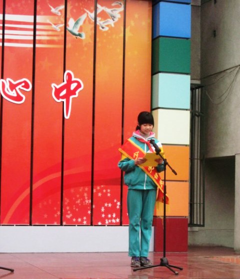 11级赵天骄代表支教志愿者发言,他讲述了雷锋同志的两个故事,带领大家重温雷锋事迹,激起学生们对学习雷锋精神的热情,并表达了成人直播