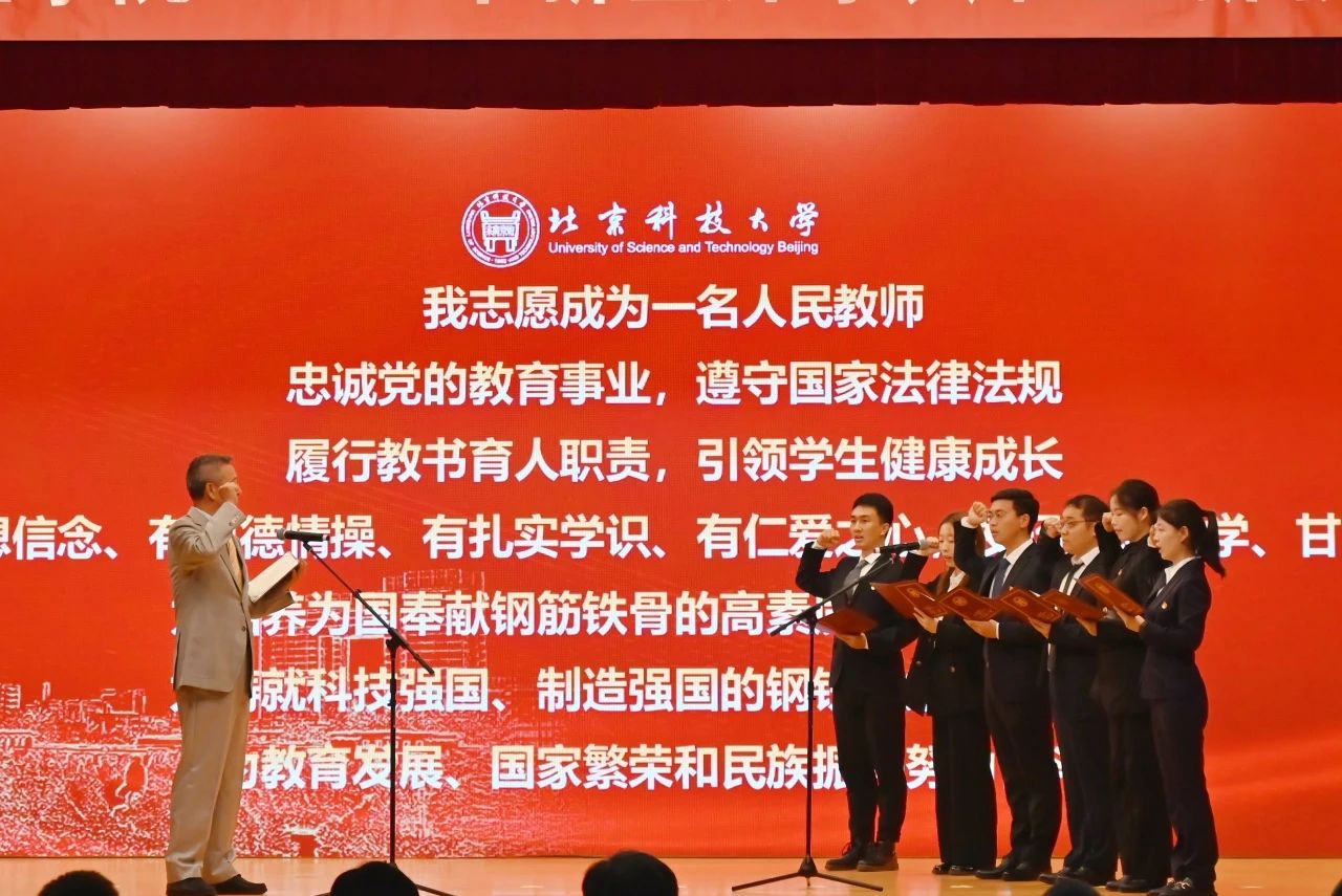 钢筋铁骨心向党,百炼成钢铸脊梁。9月20日晚7:30,成人直播 2024年新生开学典礼暨新教师入职仪式如期举行。典礼主会场设在校本部教职工活动中心,分会场设在昌平创新园区,同时开通在线直播和互动平台。成人直播 学生工作部副部长王斌,成人直播 院长张建良,党委书记宗燕兵,副院长闫柏军、马保中、任英,党委副书记、副院长陈怡凌出席典礼。钢冶系于会香、理化系张梅、有色系赵洪亮、生态系刘晓明、储能系于然波、退休教师郭汉杰等老师与新生班主任及各年级辅导员参加典礼。成人直播 2024级全体新生457人、新入职教师6人全程参与。开学典礼和入职仪式由党委副书记、副院长康泰主持。